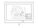 そして、表示制御回路58は、フレームメモリ56から広帯域画像データ、血管深さ画像データ、血液濃度画像データ、酸素飽和度画像データを読み出し、これら読み出した画像データに基づいて、図9または図10に示すような広帯域光画像72、血管深さ画像73、血液濃度画像84、酸素飽和度画像74をモニタ14に表示する。図9に示すモニタ14では、通常光画像である広帯域光画像72に加え、血管深さ画像73、血液濃度画像84、酸素飽和度画像74のいずれかが同時に並列表示され、図9に示すモニタ14では、広帯域光画像72、血管深さ画像73、血液濃度画像84、酸素飽和度画像74の4つの画像が同時に並列表示される。  Then, the