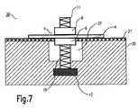 図10は、本発明による構造の第三の代表的な実施形態を示す正面図である。本実施形態は、既述した代表的な実施形態とかなり類似しているが、本実施形態では構造物要素12が対象物20を貫通して突出している。構造物要素12は、外面が比較的滑らかであるとともに対象物20の両側で開口した孔部をもつ管状体を有している。該孔部は、例えばケーブルのような物を、対象物20を通って配することを可能としている。孔部内への液体の浸入を防止するために、コア体2および可撓なリム体4を有する仕上げ要素1は、構造物要素の実質的にシャンク状をなす自由外端10を覆うように配される。ここで、該仕上げ要素は、バルブ体7によって外端部がシール可能となっている。本実施形態では、構造物要素12は比較的滑らかな外面を有しているので、仕上げ要素1は可撓なリム体4によって対象物20に液密に取り付けられる。  FIG. 10 is a front view showing a third exemplary embodiment of a structure according to the present invention. This embodiment is quite similar to the representative embodiment described above, but in this embodiment, the