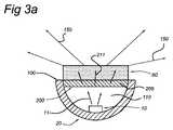 このように、発光材料部205は、LED上にコーティング部のような層で又は複数のコーティング部で設けられている。しかしながら、発光材料部205は、光チャンバの壁部に設けられてもよい(以下も参照されたい。)。また、発光材料部205は、透過性の支持体又は発光セラミック材料のような透過性の材料中又はその上に含まれることもあり得る。  Thus, the light emitting