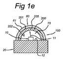 図1aないし図1fにおける光源10は、例えば、商業的に知られているように発光材料のコーティングを伴うLEDを有し得るが、一実施の形態では、光源光11が光源10の下流で(光源からゼロではない距離において)任意的に変換される覆いのない(bare)光源、特にLEDを意味してもいることに注意されたい。  The