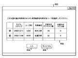 選択テーブル作成部410により作成された選択テーブルは、提示部250へ渡される。提示部250は、選択テーブル作成部410により作成された選択テーブルを、図6に示すように指示受付画面のウィンドウとは異なる新たなウィンドウ600として、あるいは指示受付画面のウィンドウの一部として利用者に提示してよい。選択テーブルを、指示受付画面のウィンドウとは異なる新たなウィンドウとして表示する場合、例えば図5に示すように、指示受付画面500に履歴選択のボタン517を設けてよい。そして、履歴選択のボタン517が押されたことに応答して、選択テーブル作成部410は選択テーブルを作成し、提示部250は作成された選択テーブルを別ウィンドウ600として提示してよい。  The selection table created by the selection
