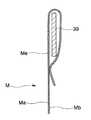 また、前記張地Mの左右のフレームFに支持されていない縁部Md、Meは、図3、図11及び図12に示すように、袋状のものであり、その縁部Md、Me内に透明な芯材39が内蔵されている。具体的には、前記座5の前縁に位置する張地M(座張地17)の縁部Md及び前記背凭れ7の上縁に位置する張地M(背張地25)の縁部Meに芯材39がそれぞれ設けられている。これらの芯材39は、それぞれ透明なシート材を一定長さの帯状に裁断してなるもので、これら各芯材39の両端部39aと前記押し込み材37との間には芯材39が存在しない可撓変形部41を形成してなる。  Further, the edge portions Md and Me not supported by the left and right frames F of the upholstery M are bag-shaped as shown in FIGS. 3, 11 and 12, and the edges Md and Me A