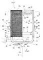 この張地Mの左右両縁部Mcには、図11及び図13に示すように、帯状をなす剛性のある押し込み材37が設けられている。この押し込み材37は、前記張地Mの縁部Mcに沿って連続して設けられたものであり、前記張地Mの縁部Mcの一面側、すなわち裏面Mb側に縫製等により添着されている。また、この押し込み材37は、合成樹脂等により作られたもので、前記取付溝35に挿入可能な厚み寸法T1を有するとともに、前記取付溝35の奥行き方向の開口寸法T1よりも大きな幅寸法W1を有したものである。  As shown in FIG. 11 and FIG. 13, the right and left edge portions Mc of the upholstery M are provided with a pushing