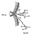 図4Aおよび4Bは、第2および第3の実施形態に類似するが、第4の実施形態は、機械的ファスナ42を使用して、瘻孔アダプタ20の遠位端24を身体装具32に接合する、修正された第4の実施形態を示す。機械的ファスナ42は、身体装具32および瘻孔アダプタ20上に嵌合リング44および46を備える。例えば、瘻孔アダプタ20のリング46は、身体装具32上のリング44の後方にスナップ嵌めを形成し、身体装具32と瘻孔周囲皮膚12との間に捕捉され得る。機械的ファスナ42は、解放可能である一方、身体装具32は、瘻孔周囲皮膚12上の定位置のままであるか、またはファスナ42は、非解放可能(例えば、少なくとも、身体装具32が除去されるまで)として構成され得る。機械的ファスナ42は、接着性付着(48の部分間に示される)および/または同様に瘻孔アダプタ20と身体装具32との間に接着性接続を提供するであろうシールによって、増強され得る。 4A and 4B are similar to the second and third embodiments, but the fourth embodiment uses a mechanical fastener 42 to join the