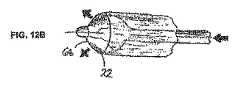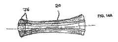 図13A、13B、および13Cを参照すると、軸方向剛性を提供する手段の1つは、瘻孔アダプタ20の外または内面上に多数のバットレスまたは補強要素72を組み込むことである。補強要素72は、瘻孔アダプタ20のチューブ状軸と略平行に配向される。補強要素72のサイズ、数、および配置は、瘻孔アダプタ20の軸方向剛性を決定するであろう。しかしながら、個々の補強要素72は、比較的に横方向にコンプライアントであり、チューブ状瘻孔アダプタ20は、半径方向に可撓性のままであるだろう(圧搾時の半径方向に屈曲することを示す矢印74aと、軸方向力に耐えることを表す矢印74bを参照)。 With reference to FIGS. 13A, 13B, and 13C, one means of providing axial stiffness is to incorporate multiple buttresses or reinforcement elements 72 on the exterior or interior surface of the