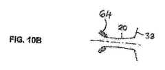 図10Aおよび10Bを参照すると、膨張可能受け材56の代わりに、瘻孔アダプタ20は、環状発泡体リング64を備え、腸壁52の内面と接触し、シールを生成する。発泡体リング64は、任意に、そのシール特性を改善するように成形される。また、発泡体の厚さ、および/または発泡体の直径、ならびに/あるいは発泡体の接触角度は、シール特徴を最適化するように調節可能である。例証される実施形態では、発泡体リングは、円錐形状を有し、排出物の流動に対して、漏斗状幾何学形状を呈する。内および/または外面は、円錐台形であり得る。発泡体リング64の他の形状も、所望に応じて、使用され得る。例えば、発泡体リングは、代替として、円筒形環状形状を有し得、その断面は、腸内壁52の表面と略垂直に配向される。 Referring to FIGS. 10A and 10B, instead of the