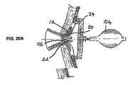 図20A、20B、および20Cを参照すると、別の実施形態では、瘻孔アダプタ20は、折り畳まれた形状(図20A)に部分的に反転され、その近位端22は、拘束要素または先端102によって、一時的に閉鎖され得る。使用時、その反転状態における瘻孔アダプタ20は、瘻孔10(図20A)内に部分的に導入され、次いで、適度な量の空気または生理食塩水が、瘻孔アダプタの遠位端を加圧するための加圧源104から印加される。図20Bおよび20Cに例証されるように、圧力によって、瘻孔アダプタ20を広げ、したがって、瘻孔アダプタ20が広げられると、腸内に近位端22を導入させる。 Referring to FIGS. 20A, 20B, and 20C, in another embodiment, the