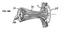 図19Aおよび19Bを参照すると、別の実施形態では、拘束要素102は、瘻孔アダプタ20をその折り畳まれた状態に保持するために、円錐形の先端の形態である。円錐形は、上述のように、溶解可能材料から形成され得る。加えてまたは代替として、挿入デバイス100が採用され、瘻孔アダプタ20を導入し、拘束要素(円錐形先端)102を除去し得る。例えば、拘束要素(円錐形先端)102は、瘻孔アダプタ20がその完全に挿入される位置に到達すると除去され得、次いで、拘束要素(円錐形先端)102は、挿入デバイス100を通して印加される完全挿入力に耐える。次いで、挿入デバイス100は、瘻孔アダプタ20の遠位端24を通して引き抜かれるであろう。 Referring to FIGS. 19A and 19B, in another embodiment, the restraining