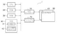 図2は、本発明の実施形態に係る情報処理装置のハードウェア構成を示すブロック図である。本実施形態の情報処理装置1は、CPU(Central Processing Unit)10、ROM(Read Only Memory)20、RAM(Random Access Memory)30、HDD(Hard Disk Drive)40、LCD(Liquid Crystal Display)コントローラ50、LCD60、タッチパネルコントローラ70、タッチパネル80を有している。  FIG. 2 is a block diagram showing a hardware configuration of the information processing apparatus according to the embodiment of the present invention. An information processing apparatus 1 according to the present embodiment includes a CPU (Central Processing Unit) 10, a ROM (Read Only Memory) 20, a RAM (Random Access Memory) 30, an HDD (Hard Disk Drive) 40, and an LCD (Liquid Crystal Display)