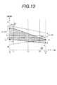 図13は、第2実施形態の視差量補正部20による視差補正後の視点画像におけるズーム値と視差量との対応関係(視差分布)を示す。  FIG. 13 shows the correspondence (parallax distribution) between the zoom value and the parallax amount in the viewpoint image after the parallax correction by the parallax