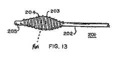他に、異なる目的で螺旋状の造形の使用を明かした技術もある。例えば、Spinosaの米国特許第3,815,608号は、尿がカテーテルの外側周囲を流れることができるように尿道壁をシャフトから離して保持するよう考案されたねじを有するカテーテルを開示している。その様な開示では、同じ様に、螺旋状の造形に顧慮すること無く、押し込み方式への依存、即ち、その様な構造は引っ張り出せばよいという前提が明きらかで、またもや、回転を押し出し式に代わる実行可能な代替法として認識し損ない、効果的な回転前進に必要な構造の重要な特徴を解明し損なっている。 Another technique reveals the use of spiral shapes for different purposes. For example, Spinosa U.S. Pat. No. 3,815,608 discloses a catheter having a screw designed to hold the urethral wall away from the shaft so that urine can flow around the outside of the catheter. . In such a disclosure as well, it is clear that the dependence on the push-in method, i.e., that such a structure only has to be pulled out without regard to the spiral shaping, and again the rotation is pushed out. It fails to recognize as a viable alternative to the formula and fails to elucidate key features of the structure necessary for effective rotational advancement.