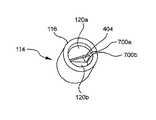 何れにおいても、実質的に螺旋状の外側シェル116は、相互に撓む横方向端縁700a,700bを含むことができる。すでに論じたように、外側シェル116がその非圧縮状態にある場合、内側弁部118は外側シェル116から内側に延在する係合部120a,120bを含むことができ、実質的に直線状の係合接合部126を形成する。  In either case, the substantially helical