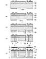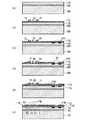図2に示される加速度センサ1の、A−B断面を図8、図9に示す。図8はボンディングパッド24を含まない箇所の断面図、図9はボンディングパッド24を含む箇所の断面図である。先ず、図8(A)および図9(A)に示されるように、例えば工程1で厚さ525μmで体積抵抗率16Ω/cm程度のシリコン基板130に厚さ2μm程度の酸化シリコンによる埋め込み絶縁層120を介して厚さ5μmで体積抵抗率6〜8Ω/cm程度のN型のシリコン基板(活性層)110とで3層構造とされたSOIウエハを準備する。  FIGS. 8 and 9 show cross sections of the acceleration sensor 1 shown in FIG. FIG. 8 is a cross-sectional view of a portion not including the