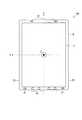 電子機器100は、薄い箱状の筐体Bを備え、この筐体Bの上面に表示部11が配置されている。表示部11は、ユーザによってタッチされた表示画面上の位置を検知するタッチパネル(図2、タッチパネル111参照)を備えている。また、筐体Bの正面下部にはユーザが各種操作を行う操作スイッチ等である操作スイッチ19、ユーザの音声を取得するためのマイク21が配置されている。また、筐体Bの正面上部には音声出力を行うためのスピーカ22が配置されている。また、筐体Bの縁には、把持するユーザの圧力を検知する圧力センサ23が配置されている。なお、図示例ではX軸方向の左右の縁に圧力センサ23を備える構成を例示したが、Y軸方向の上下の縁に圧力センサ23を備えてもよい。  The