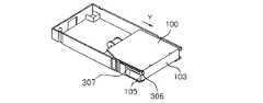 また、セル300は、第1の側壁301の反対側に位置する第2の側壁302の開口部305側にラッチレバー306及びラッチレバースプリング307を有する。第1の側壁301及び第2の側壁302はカートリッジ100の挿抜方向に対して平行に設けられている。ラッチレバー306は、カートリッジ100に係合することでカートリッジ100をセル300内に保持する係合位置B(図9B参照)と、カートリッジ100との係合が解除された解除位置A(図9A参照)との間で揺動可能に設けられている。また、ラッチレバー306と第2の側壁302とは一体的に設けられているが、別体として設けられていてもよい。ラッチレバー306は、その一部を切り欠いて形成された先端部分に開口部305側に曲げられた係合部を有する。ラッチレバー306は、カートリッジ100の後面103の第2の側面105側に係合することでカートリッジ100がセル300から意図せずに抜け出ることを防止する。  The