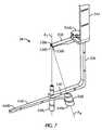 第1ガイドワイヤ軸線A7をガイドワイヤターゲット538aと整合させるため、一実施例では、フレーム536は、第1スリーブアーム540を含む。一実施例では、第1スリーブアーム540は、ターゲットアーム538に向かって面する近位側および近位側の反対側の遠位側を含む。一実施例では、フレーム536は、実質的にC字形状である。一実施例では、フレーム536は、第1スリーブアーム540が踵骨12の下を延びる際に、ターゲットアーム538が距骨頂面14aの上方を延びるように、曲げてあるか、或いは、少なくとも弓形をなしている。一実施例では、ターゲットアーム538と、第1スリーブアーム540とは、実質的に平行である。一実施例では、第1スリーブアーム540は、第1ガイドワイヤスリーブ542を含む。一実施例では、第1ガイドワイヤスリーブ542は、第1スリーブアーム540と一体である。一実施例では、第1ガイドワイヤスリーブ542は、第1スリーブアーム540に対して取り外し可能である。一実施例では、第1ガイドワイヤスリーブ542は、第1スリーブアーム540の自由端に、または、その近くに位置決めされる。一実施例では、第1ガイドワイヤスリーブ542の少なくとも一部は、第1スリーブアーム540の近位側から延びている。一実施例では、第1ガイドワイヤスリーブ542の少なくとも一部は、第1スリーブアーム540の遠位側から延びている。一実施例では、第1ガイドワイヤスリーブ542は、第1スリーブアーム540の近位側および遠位側から延びている。一実施例では、第1ガイドワイヤスリーブ542は、ガイドワイヤターゲット538aに対して適所に固定されている。一実施例では、第1ガイドワイヤスリーブ542の長さ方向中央軸線は、第1ガイドワイヤ軸線A7と同軸に整合するように構成されている。一実施例では、第1ガイドワイヤスリーブ542は、ターゲットアーム538に対して適所に固定されている。一実施例では、第1ガイドワイヤスリーブ542は、第1ガイドワイヤ軸線A7を中心として半径方向に配置されている。一実施例では、第1ガイドワイヤ軸線A7は、ガイドワイヤターゲット538aと整合している。  To align the first guidewire axis A7 with the