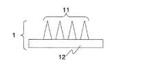 ここで、針状物体の形状について説明する。図1は針状物体1の形状を模式的に表した側面図である。平らな基板12の片面側に微小な針状部分11が複数配列されている。針状部分11の形状は、円錐形状、多角錐形状、その他の適宜の形状を選択することが可能である。針状部分11の配列は適宜選択可能で、例えば、矩形格子配列、三角格子配列、六角格子配列、同心円状の配列、1次元的な配列、その他の適宜の配列を選択すればよい。また、基板12の形状も矩形板状、円板状、楕円板状、その他の適宜の形状を選択可能である。Here, the shape of the needle-like object will be described. FIG. 1 is a side view schematically showing the shape of the needle-