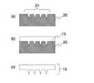このとき、凸部31それぞれの先端には多糖類溶液17が付着しておりそのまま垂直に引き上げられているので、多糖類溶液17表面からツノ状の突起18が複数形成された状態となる(図3(c)参照)。この状態のまま、多糖類溶液17を乾燥固化させる。At this time, since the