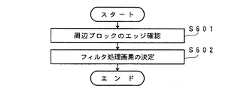 続いて、ステップS102にて、ステップS101で求まったエッジの方向からフィルタ方向の選択を行う。フィルタ方向の選択後、デブロッキングフィルタの処理に必要となる8点の画素を指定する。フィルタ方向の選択と画素の指定の仕方の詳細については、ステップS601〜ステップS602(図9のフローチャート)で後述する。 Subsequently, in step S102, the filter direction is selected from the edge direction obtained in step S101. After selecting the filter direction, 8 pixels necessary for the deblocking filter process are designated. Details of the filter direction selection and pixel designation method will be described later in steps S601 to S602 (flowchart in FIG. 9).