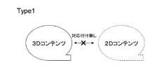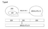 次に、「タイプ3」を説明する。図3は、この「タイプ3」の送信形態を概念的に示している。この「タイプ3」においては、コンテンツの一部が3D画像表示区間となっている。つまり、この「タイプ3」においては、1つのコンテンツに、3D画像表示区間と2D画像表示区間が含まれている。"About
