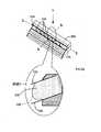 ジレット(登録商標)ブランドのセンサーエクセル(登録商標)シリーズのような、ハンドルに固定又はハンドルのまわりに回動する複数のブレードカートリッジは、毛の引張・切断プロセスを用いる。当該プロセスは、特許文献1に記載のような一セットの「弾性的に取り付けられた要素」、又は毛を引き上げて極力皮膚の毛嚢から引き出すブレードを含む。これにより、緩和状態では皮膚の表面下にある毛の当該一部に対して後続のブレードによる切断操作が行われる。このプロセスは、毛の剛性、及び、当該毛嚢に強く付着している毛幹に適用される強い引っ張りから生じる不快感を伴うことがある。 Multiple blade cartridges, such as the Gillette (R) brand sensor Excel (R) series, that are fixed to the handle or pivoted about the handle, use a hair tensioning and cutting process. The process includes a set of “elastically attached elements” as described in US Pat. No. 6,057,096, or a blade that pulls hair up and pulls it out of the hair follicle as much as possible. Thereby, in the relaxed state, the cutting operation by the subsequent blade is performed on the part of the hair below the surface of the skin. This process can be accompanied by discomfort resulting from the stiffness of the hair and the strong tension applied to the hair shaft that is strongly attached to the follicle.