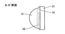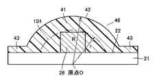 図8は、図1中の発光装置の第4変形例を示す断面図である。図8を参照して、本変形例では、外周面42および円周101の中心となる原点Oが、主表面22からずれた位置に配置されている。原点Oは、主表面22に対して蛍光体層31および透明樹脂層41の反対側にずれている。このような構成においては、蛍光体層31および透明樹脂層41が完全な半球形状を有しない。  FIG. 8 is a cross-sectional view showing a fourth modification of the light emitting device in FIG. Referring to FIG. 8, in the present modification, the origin O that is the center of the outer