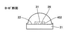 このように薄型化、軽量化の流れの中、封止樹脂のサイズが小さくなる一方でLED素子のサイズが大きくなった結果、両者のサイズがオーダー的に同程度にまで近づいている。このような条件の下、LED素子を点光源として扱う従来の手法では、封止樹脂から十分な光を取り出すことができない。また、2次光の光源として蛍光体を利用する場合、考慮すべき発光体の領域が、LED素子のみから、LED素子と蛍光体とを含む広い領域に拡大する。この場合においても、従来の手法では封止樹脂から十分な光を取り出すことができない。 As described above, the size of the sealing resin is reduced while the size of the LED element is increased while the size and the weight are reduced. As a result, both sizes are approaching the same order. Under such conditions, the conventional method of handling the LED element as a point light source cannot extract sufficient light from the sealing resin. When a phosphor is used as the light source for secondary light, the area of the light emitter to be considered is expanded from only the LED element to a wide area including the LED element and the phosphor. Even in this case, the conventional method cannot extract sufficient light from the sealing resin.