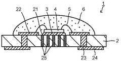 図1は、上記したLED素子用基板を有するLEDパッケージの一例を示す断面図である。LEDパッケージ1は、例えば略平板状のLED素子用基板2を有しており、その略中央部に設けられる搭載部21に接着剤3を介してLED素子4が搭載されている。LED素子用基板2は、搭載部21の周辺に一対の接続端子22を有しており、この接続端子22にLED素子4の図示しない一対の電極がボンディングワイヤ5を介して電気的に接続されている。  FIG. 1 is a cross-sectional view showing an example of an LED package having the above-described LED element substrate. The LED package 1 has, for example, a substantially flat