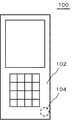 図1は、第1の実施形態に係る電子機器100の構成を示す断面図である。図2は電子機器100の平面図である。電子機器100は、例えば携帯通信端末であり、筐体102、発振装置110、及び制御部50を備えている。だたし電子機器100は、ラップトップ型パーソナルコンピュータ、小型ゲーム機器などであってもよい。発振装置110は筐体102の内部に収容されている。発振装置110は、複数の発振部を備えている。各発振部は、それぞれが振動子を有しており、マトリクス状に配置されている。複数の発振部は制御部50によって出力が制御されている。制御部50は、筐体102の内部に収容されており、発振部に、可聴域の音声データを変調した超音波発振用のデータを入力することにより、発振装置110をパラメトリックスピーカとして機能させる。筐体102にはスピーカ孔104が設けられている。スピーカ孔104は、発振装置110の発振面に対向しており、発振装置110の音響レンズ30によって塞がれている。音響レンズ30は、複数の発振部それぞれから発振された超音波を、一点に集束させる方向に屈曲させる。以下、詳細に説明する。(First embodiment)