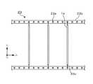特許文献1の技術を説明する前に従来の種子水晶の配置法ついて簡単に説明すると、板状(または棒状)の種子水晶1aは、図1に示すようにオートクレーブ2内に設置された多段構成の支持具23に多数懸垂されており、この図に向かって正面と裏面とに人工水晶が育成されるようになっている。図6は、種子水晶1aの懸垂された上記支持具23の一部を拡大して図1のX1方向から見た様子を示したものである。各種子水晶1aは、支持具23を構成する支持棒23b間に多数横架された支持枠23aに対して針金等の留め金23cによりその上下を固定され、人工水晶の育成される面(以下、基本成長面という)と重力方向(図中のY1方向)とが平行になるように支持具23に配置されている。