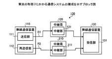 図2は、図1に示した通信システムの変形例を示すブロック図である。図2において、図1に示した構成と同様の構成については同一の符号を付して説明を省略する。図2に示すように、無線通信装置110と無線通信装置130は、中継局120および中継局210を介してデータを送受信する第1経路R1と、中継局120を介さずに中継局210を介してデータを送受信する第2経路R2と、を利用することができるようにしてもよい。  FIG. 2 is a block diagram showing a modification of the communication system shown in FIG. In FIG. 2, the same components as those shown in FIG. As shown in FIG. 2, the