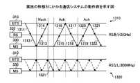 第1経路R1は、周波数が高く伝搬距離が小さいため、RS320(図3参照)を経由する経路とする。第2経路R2は、周波数が低く伝搬距離が大きいため、RS320を経由しない経路とする。シーケンス図610(RSあり)およびシーケンス図620(RSなし)は時間軸が共通のシーケンス図である。シーケンス図610は、第1経路R1における信号の送受信を示している。シーケンス図620は第2経路R2における信号の送受信を示している。  Since the first route R1 has a high frequency and a short propagation distance, the first route R1 is a route that passes through the RS 320 (see FIG. 3). The second route R2 is a route that does not pass through the