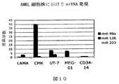 癌細胞(例えば、白血病細胞)で異なって発現されているマイクロRNAの同定は、癌及び他の障害(例えば、血小板障害)に関与するピンポイント特異的miRNAを助けることができる。さらに、これらのmiRNAの推定標的の同定は、それらの病原性における役割を解明する助けとなるであろう。特に、血球分化の間の、miRNA発現のパターン及び配列を発見することは、正常及び悪性造血におけるこれらの小さな非翻訳遺伝子の機能的役割についての洞察を提供することができる。 Identification of microRNAs that are differentially expressed in cancer cells (eg, leukemia cells) can help pinpoint-specific miRNAs involved in cancer and other disorders (eg, platelet disorders). Furthermore, identification of putative targets for these miRNAs will help elucidate their role in pathogenicity. In particular, discovering miRNA expression patterns and sequences during blood cell differentiation can provide insights into the functional role of these small untranslated genes in normal and malignant hematopoiesis.