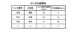 As shown in FIG. 4, the center traffic information includes a link number for identifying a link, a degree of traffic congestion, a link travel time indicating an average required time of a vehicle traveling on the link, and an average vehicle speed of the vehicle traveling on the link. Composed. For example, the center traffic information shown in FIG. 4 indicates that for the link with the link number “1000”, the congestion degree is “congested”, the link travel time is 28 sec, and the average vehicle speed is 17 km / h. The