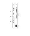 数式(5)において、「FF(R、V)」は、目標操舵角算出におけるフィードフォワード項を表す。目標操舵角算出におけるフィードフォワード項FF(R、V)は、図6に例示するように、目標の軌跡、ここでは、イベント軌跡の各地点における曲率R等に基づいて算出されるFF操舵制御量である。FF操舵制御量は、自車両位置検知装置18等が検出した車両2の現在位置におけるイベント軌跡の曲率R等に基づいて算出される。FF操舵制御量は、車両モデル等を用いて曲率Rと車速V等に応じた操舵角となるように算出される。「FB(X、β)」は、目標操舵角算出におけるフィードバック項を表す。目標操舵角算出におけるフィードバック項FB(X、β)は、図6に例示するように、目標の軌跡、ここでは、イベント軌跡に対する車両2の位置の横方向偏差Xと方向偏差βとに基づいて算出されるFB操舵制御量である。方向偏差βは、典型的には、イベント軌跡の接線と車両2の前後方向中心線とがなす角度に相当する。FB操舵制御量は、自車両位置検知装置18が検出した車両2の現在位置等に応じた横方向偏差X、方向偏差βに基づいて算出される。FB操舵制御量は、横方向偏差X、方向偏差βが0になるように算出される。  In Formula (5), “FF (R, V)” represents a feedforward term in target steering angle calculation. The feedforward term FF (R, V) in the target steering angle calculation is, as illustrated in FIG. 6, the FF steering control amount calculated based on the target trajectory, here, the curvature R at each point of the event trajectory. It is. The FF steering control amount is calculated based on the curvature R of the event locus at the current position of the