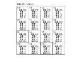 次に、ホストコンピュータ100のメモリーに記憶される複数種類の制御パターン、すなわち空調用パターン、換気用パターン、及び照明用パターンについて詳しく説明する。前述したように、空調用パターンは、区画毎の人の有無のパターンに応じ、各空気調和機10A〜10Pについて設定温度を調整するものである。また、換気用パターンは、区画毎の人の数のパターンに応じ、外気の導入量や室内空気の排出量を複数の吸気口31A〜31Pや排気口41A〜41Pのそれぞれについて設定するものである。言い換えれば、各吸気モータ32や各排気モータ42の回転速度を設定するものである。さらに、照明用パターンは、区画毎の人の有無のパターンに応じ、各蛍光灯ユニット20のそれぞれについて照度を調整するものである。<Specific examples of each pattern>