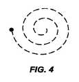 本発明の実施形態において、光ファイバのカンチレバー自由端部分は、アクチュエータ・チューブによって2次元の走査パターンで移動させることができる。適切な走査パターンは、それらに限定されないが、楕円、円、螺旋、プロペラ・パターン、及びこれらの組合せのような放射状走査パターン、並びに、ラスタ走査パターン、リサジュー走査パターン、及びこれらの組合せのような非放射状パターンを含む。図4は、本発明の実施形態による、適切な螺旋走査パターンの一例を示す。螺旋走査パターンは、走査中に光ファイバの自由遠位先端部が辿る種々異なる位置、及び/又は走査型ビーム・デバイスの場合には、走査中に自由遠位先端部の端部から放射されるビーム又は照射スポットの表面上の位置を表すことができる。1つの点を用いて瞬間的な時間の位置を示す。 In embodiments of the invention, the cantilever free end portion of the optical fiber can be moved in a two-dimensional scanning pattern by an actuator tube. Suitable scan patterns include, but are not limited to, radial scan patterns such as ellipses, circles, spirals, propeller patterns, and combinations thereof, and raster scan patterns, Lissajous scan patterns, and combinations thereof. Includes non-radial patterns. FIG. 4 shows an example of a suitable helical scan pattern according to an embodiment of the present invention. The helical scan pattern is emitted from different positions followed by the free distal tip of the optical fiber during scanning and / or in the case of a scanning beam device from the end of the free distal tip during scanning. The position on the surface of the beam or illumination spot can be represented. One point is used to indicate the instantaneous time position.