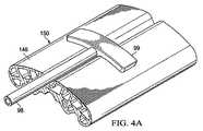 図4Aおよび図4Bに示すように、閉鎖医療クッションに減圧を提供するために、チューブコネクタ199を使用することができる。チューブコネクタ199は、閉鎖医療クッション146上の中央溝部領域157と結合するようにサイズ設定および構成されている。チューブコネクタ199は、減圧供給導管198に流体流通可能に結合され、それにより閉鎖医療クッション146に減圧が送達されるようになっている。開口151は、閉鎖医療クッション146の内部で減圧が伝わるのを可能にする。図4Cに明示されるように、減圧を下方の線形創傷に伝えるのを助けるために、閉鎖医療クッション146の一部に開口164を形成するようにしてもよい。  As shown in FIGS. 4A and 4B, a