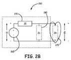 図2Bは、MRIスキャナによって生成されたRF電磁エネルギーから、リード150上で取得されたRFエネルギーを表す、図2Aのリード150に対する簡単化した等価回路260を示す概略図である。図2Bで示すように、回路260の電圧(Vi)265は、MRIスキャナからリード150で取得された等価なエネルギー源を表している。磁気共鳴撮像中は、リード150の長さは、アンテナと同様に機能し、MRIスキャナから体に送られたRFエネルギーを受け取る。図2Bの電圧(Vi)265は、例えば、RFエ