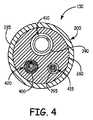 00を含み、また導体410、415、および420は、管腔390、395、および400内にそれぞれ配置される。導体410、415、および420のそれぞれは、各管腔390、395、400内で長手方向に延び、かつ電極(例えば、図3の電極312、255、または257)に、さらにコネクタ組立体310の電気的な接点に電気的に結合される。4, a cross-sectional view of the