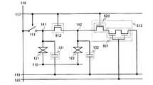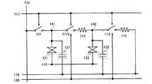 なお、スイッチとしてトランジスタを用いる場合、スイッチは、入力端子(ソース端子またはドレイン端子の一方)と、出力端子(ソース端子またはドレイン端子の他方)と、導通を制御する端子(ゲート端子)とを有している。一方、スイッチとしてダイオードを用いる場合、スイッチは、導通を制御する端子を有していない場合がある。そのため、トランジスタよりもダイオードをスイッチとして用いた方が、端子を制御するための配線を少なくすることが出来る。Note that when a transistor is used as a switch, the switch has an input terminal (one of a source terminal or a drain terminal), an output terminal (the other of the source terminal or the drain terminal), and a terminal for controlling conduction (a gate terminal). doing. On the other hand, when a diode is used as the switch, the switch may not have a terminal for controlling conduction. Therefore, the use of a diode as a switch rather than a transistor can reduce the wiring for controlling the terminal.