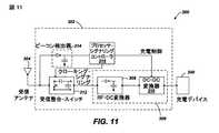 受信アンテナ304は、送信アンテナ204(図10)と同じ周波数、または同じ周波数の近くで共振するように同調させられる。受信アンテナ304は、送信アンテナ204と同様に寸法決定でき、または関連するデバイス350の寸法に基づいて別様にサイズ決定できる。例として、デバイス350は、送信アンテナ204の直径または長さよりも小さい直径寸法または長さ寸法を有するポータブル電子デバイスとすることができる。そのような例では、受信アンテナ304は、同調キャパシタ(図示せず)のキャパシタンス値を低減し、受信アンテナのインピーダンスを増加するために、多巻きアンテナとして実装できる。例として、受信アンテナ304は、アンテナ直径を最大にし、受信アンテナのループ巻き(すなわち、巻線)の数および巻線間キャパシタンスを低減するために、デバイス350の実質的な周囲の周りに配置できる。  Receive