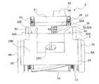 インバータユニット5をハウジング2に装着する際に、係止部材22Eと被係止部53とを対向させインバータユニット5をハウジング2に押し付けると、係止部材22Eは、図示せぬばねの押圧力に抗して下端部54Cを左右方向中央側に移動させ、基体54Aと側壁55との間に侵入する。これにより、下端部54Cが係止部材22Eの貫通孔22c(図5)に嵌込み、インバータユニット5は上側部22の最上平坦面22A上に固定される。また、インバータユニット5がハウジング2に装着されている状態において、作業者が図示せぬばねの押圧力に抗してレバー57を左右方向内側に向けて押すと、レバー57の揺動に連動して押圧片54が左右方向内側に移動して、下端部54Cが貫通孔22cから抜けて係止部材22Eとの係合が解除される。  When the