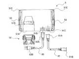 また、筐体51の左右両側面の前方部分には、図9に示すようにインバータユニット5をハウジング2から離間した状態で使用するためのベルト引掛部51Eが設けられている。ベルト84に設けられるフック等をベルト引掛部51Eに連結することにより、使用者はインバータユニット5を肩や腰に掛けて携帯することができる。  Further, as shown in FIG. 9, a