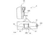 押圧片54は、略コ字型の部材であって、基体54Aから突出する上端部54B及び下端部54Cを有している。基体54Aから側壁55までの距離は係止部材22Eの板厚よりも大きく、下端部54Cから側壁55までの距離は係止部材22Eの板厚よりも小さい。図6に示すようにインバータユニット5がハウジング2から離脱した状態において、押圧片54は、図示せぬばねによって左右方向外側に向かって押圧され、基体54Aが側壁55から基体54Aの方へ突出した突出部55Aに当接することにより支持されている。また、レバー57は図示せぬばねによって左右方向外側に向けて押圧され、押圧片54及び規制部から離間した状態で筐体51に支持されている。  The