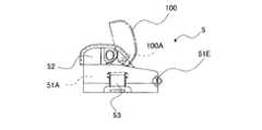 筐体51の左右両側面の前後方向中央部には、被係止部53が設けられている。図6等に示すように、被係止部53は、押圧片54と、側壁55と、筐体51から延びるレバー軸部56と、レバー軸部56を中心に揺動可能に設けられるレバー57と、レバー57の揺動を規制する規制部58とから構成されている。  Locked