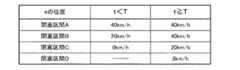 を考える点を除き、実施の形態1による走行計画作成装置と同様の構成をとる。ここでvmaxは、列車の最高速度であり、例えば図7に記載の状況の場合、後続列車103の位置x,時刻t,先行列車101が閉塞区間Dを抜ける時刻Tの値に応じて、図8に示す表の値をとる。The travel plan creation device according to the second embodiment, when performing optimization, instead of considering the condition x (T) ≦ xb