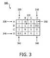 一変形では、正のアサーション及び負のアサーションの重みを受け入れパーセンテージが含むアサーション・マトリクス300は、患者IDのマッチ及びミスマッチそれぞれについての、出す側の一機関からのアサーションに対して異なり得る。マトリクス変形における各セルは、2つの受け入れ値(正のアサーションの場合の1つ、及び負のアサーションの場合の1つ)を含む。ここでは、セルは2つの値を含み、1つの値は、レコードが受け入れられる確率としての受け入れ率であり、0は受け入れ又は拒否がない状態であり、1は特定の受け入れである状態である一方、第2の値は、拒否される確率であり、0は受け入れがない状態であり、1は特定の拒否である状態である。前述の2つの値は、横並び、上及び下、1つが別のものの上に配置された状態、互いに対角線上に隣接した状態、又は何れかの数の組合せで、マトリクスの同じセル内に、若しくは並列のマトリクスに位置し、あるいは、別の適切なタイプのデータ構造(例えば、複数のリストのうちのリスト等)に記憶し得る。  In one variation, the
