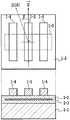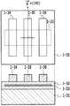 次に、図3Dに示すように、単結晶ダイヤモンド薄膜1−2の表面にソース電極1−4,ゲート電極1−5,ドレイン電極1−6を形成する。単結晶ダイヤモンド薄膜1−2表面の上方から見ると、ソース電極1−4直下とドレイン電極1−6直下にチャンネル1−3が存在する(チャンネル1−3は、図3Dの上面図において点線で示してある)。ゲート電極1−5は、ソース電極1−4とドレイン電極1−6の中間に配置する。単結晶ダイヤモンド薄膜1−2表面の上方から見た場合に、ゲート電極1−5は、チャンネル1−3と交差するように配置する。チャンネル1−3の上方のゲート電極1−5の長手方向 Next, as shown in FIG. 3D, a source electrode 1-4, a gate electrode 1-5, and a drain electrode 1-6 are formed on the surface of the single crystal diamond thin film 1-2. When viewed from above the surface of the single-crystal diamond thin film 1-2, there are channels 1-3 immediately below the source electrode 1-4 and the drain electrode 1-6 (the channel 1-3 is indicated by a dotted line in the top view of FIG. 3D). Is shown). The gate electrode 1-5 is disposed between the source electrode 1-4 and the drain electrode 1-6. When viewed from above the surface of the single crystal diamond thin film 1-2, the gate electrode 1-5 is disposed so as to intersect the channel 1-3. Longitudinal direction of gate electrode 1-5 above channel 1-3