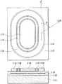 図2は、本発明の実施形態2に係るダイヤモンド半導体素子の構造を示す図である。本実施形態の構造は、大電力動作に適した構造である。本実施形態においては、ゲート電極を、競技場のトラックの形状に配置している。単結晶ダイヤモンド基板1−11の上に、単結晶ダイヤモンド薄膜1−12、並びに、単結晶ダイヤモンド薄膜の内部に二次元の正孔もしくは電子チャンネル1−13が形成されている。図2に示したように、チャンネルは小判型の形状をしている。そして、単結晶ダイヤモンド薄膜1−12の表面上には、ソース電極1−14、ゲート電極1−15、ドレイン電極1−16がチャンネル1−13の上方に形成されている。最内部にある小判型形状のドレイン電極1−16の周囲を囲むようにして、外周に向かって順次、ゲート電極1−15、およびソース電極1−14が形成されている。In the steps shown in FIGS. 3A to 3D, a single crystal diamond substrate 1-1 was used. However, even when the single crystal diamond substrate 1-1 is not used, the plane orientation of the single crystal diamond thin film 1-2 or the plane orientation of the channel 1-3 plane is αd and αc described in FIG. Needless to say, each angle range has the same effect of increasing the mutual conductance. When the single crystal diamond substrate 1-1 is not used, for example, Ir (iridium metal), MgO, and Si can be used as the substrate. Any substrate capable of forming a single crystal diamond thin film may be used.